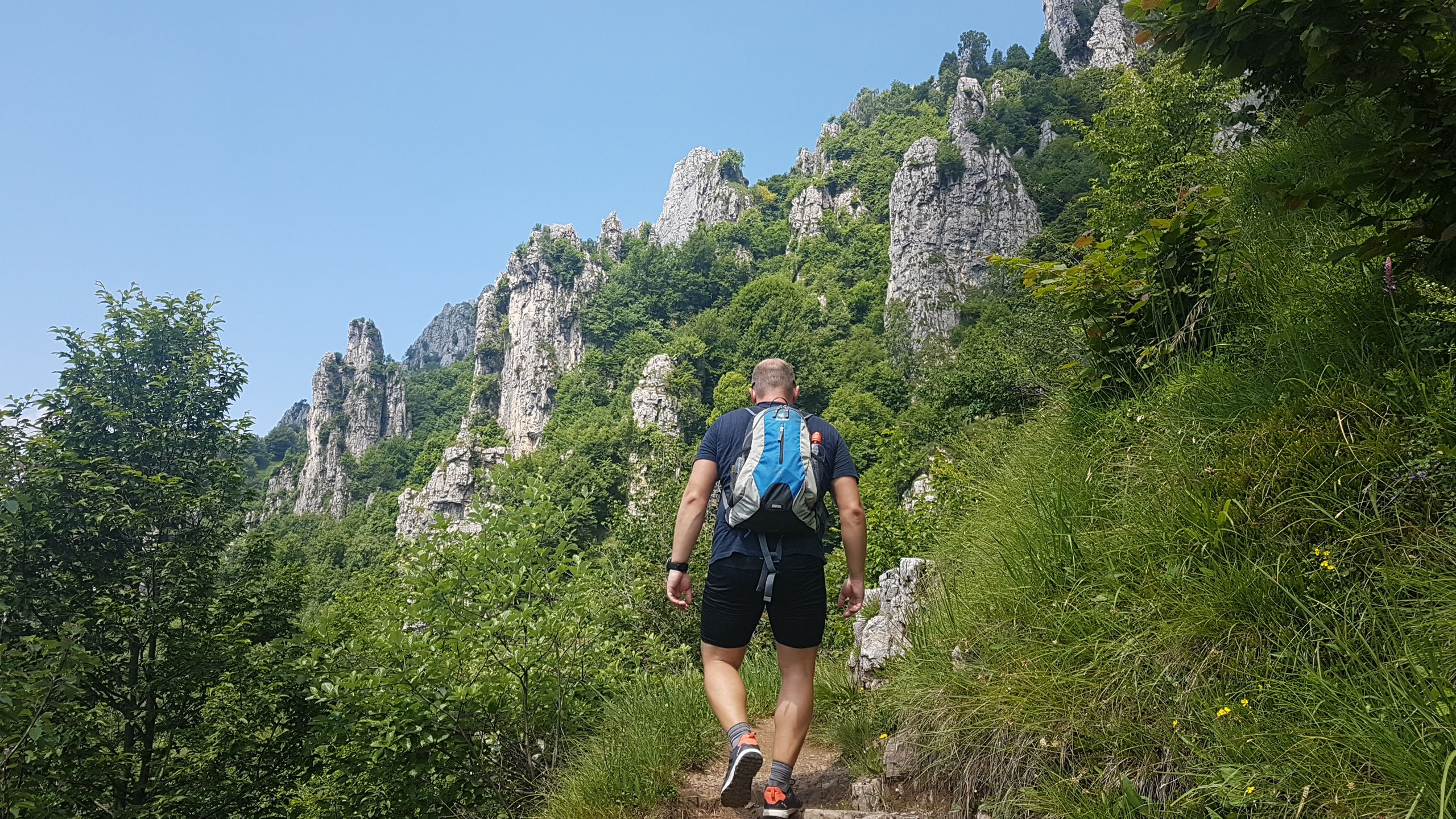 Lecco is Como’s unknown sibling at the Southeastern tip of Lago di Como. It’s the nicer part of the lake for hiking, I find. The rock formations are basically identical to the Dolomites. The only difference is the lack in altitude; the vegetation differs for that reason. This particular hike is physically challenging and includes some very steep steps over rock. Two times, I needed my hands. Going up, I was worried about feeling scared when going down. When we were actually going down, things felt easy.