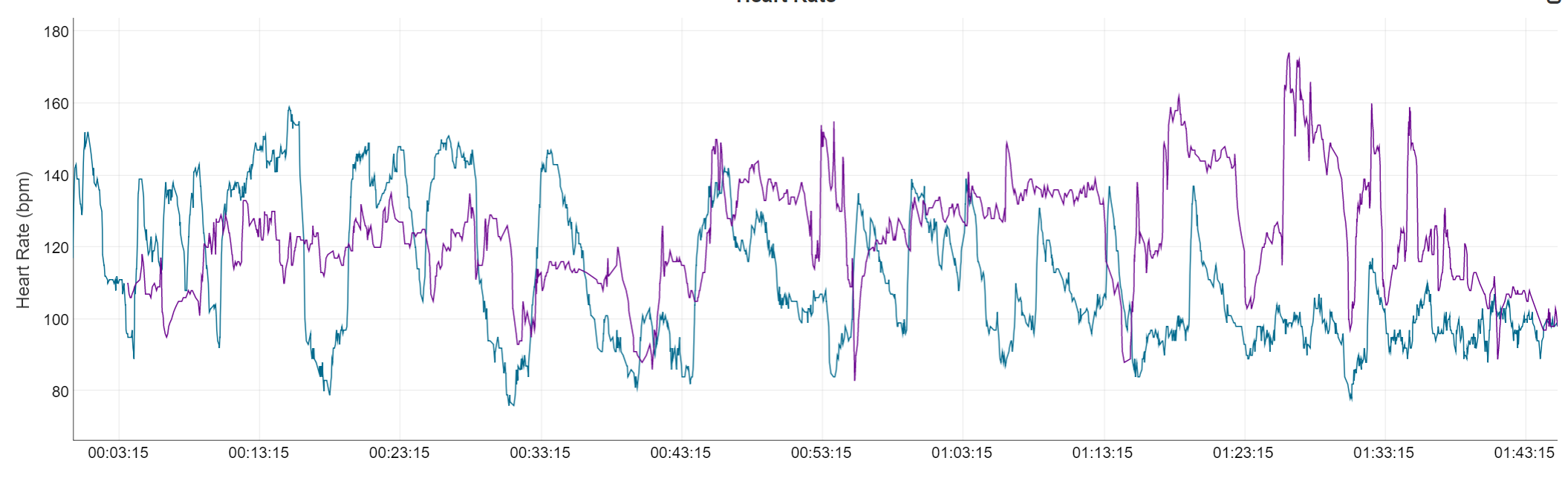 I don’t have a head-to-head test of the watch vs. a heart-rate strap for the same person on the same hike. When we hiked with two watches, two different people wore them. On the Seeberg hike, I had wanted to test it heart-rate accuracy alongside GPS accuracy. I forgot to turn on the ANT+ connection on my phone to pick up heart rate from the heart-rate strap. Instead, the watch picked up the heart-rate strap. However, here’s the heart-rate graph from the San Fruttuoso hike.