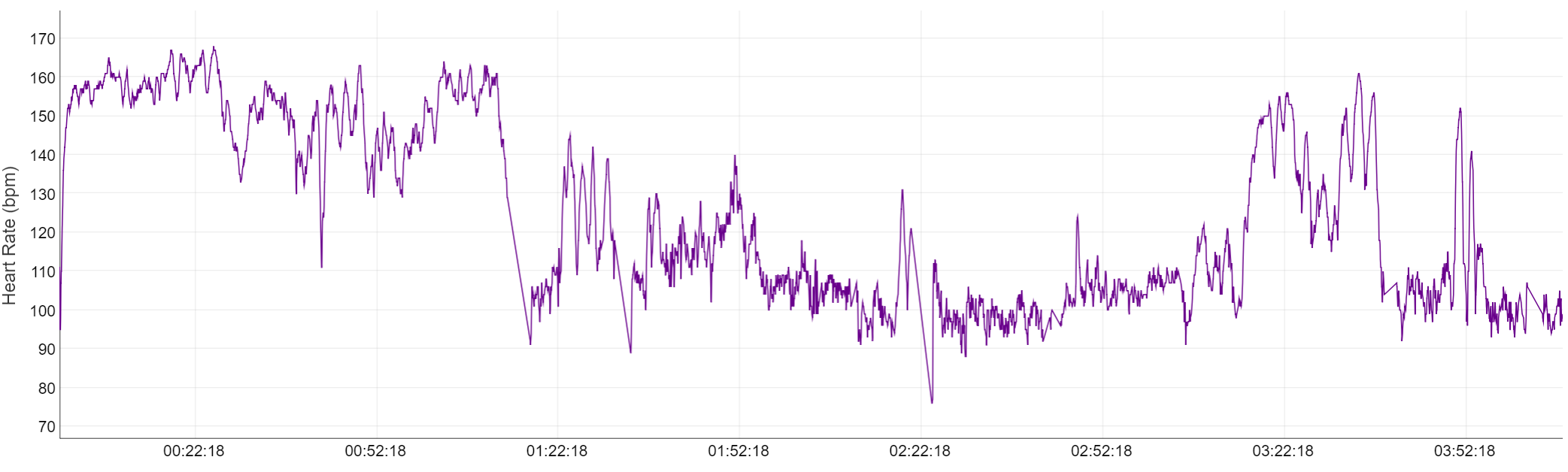 A word of warning: this section is data-based speculation rather than testing. Below you have a graph from the Seeberg hike. This is heart-rate data from my Wahoo Tickr. It took me six minutes more than one hour to reach the summit. The slope was similar to that in Italy, just longer. I hiked at higher speed, but at lower temperatures. (It was around 35°C in San Fruttuoso.) I didn’t take any micro-break on the way up. The graph shows fewer spikes on that long uphill. This might be due to the more consistently paced effort. There are spikes later where it was more of a stop-and-go due to navigating and taking pictures. This is a pattern that I should also see in a similar hike with the FR 935: The second panel below shows a hike from one week before the Seeberg. I crossed from Schliersee to Tegernsee and I started with a very similar (just steeper) climb. The climb starts 20min into the hike. As on the Tickr X, I now see many less spikes. So that’s good. However, I observe that my heart-rate runs around 5-10 beats per minute (bpm) lower than one week later at a similar uphill effort. Similarly, the FR 935 suggests that my heart-rate meandered between 60 and 80 bpm when walking in the flat or even down-hill. In similar terrain, the Tickr-X has me at 90-110 bpm, which I generally find more reasonable. (My rest heart-rate is at around 48-55, depending on what I did the day before.)