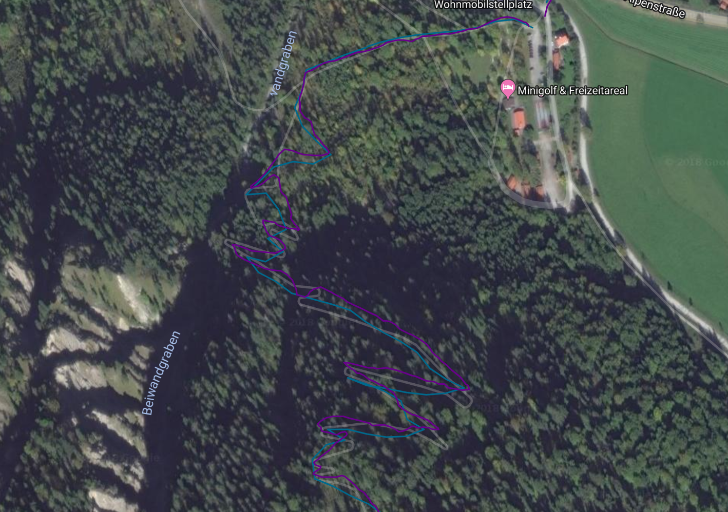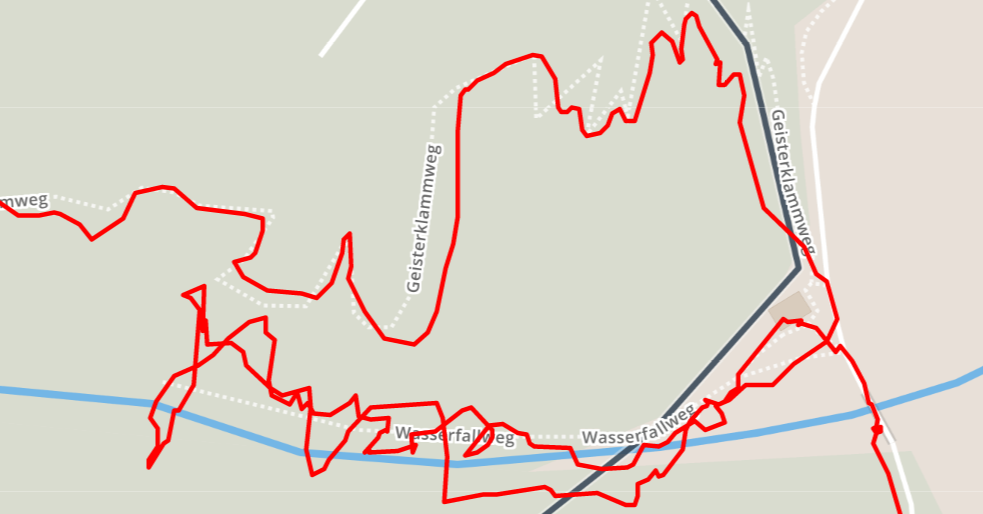I had mentioned other hikes which led through canyons. I’ve had a careful look at them: the watch did great. There’s one exception to that: The Leutaschklamm, at most 5m wide, something like 50-70m deep, caused some wonky GPS records. But honestly: you would expect that. It’s almost like walking through a tunnel.