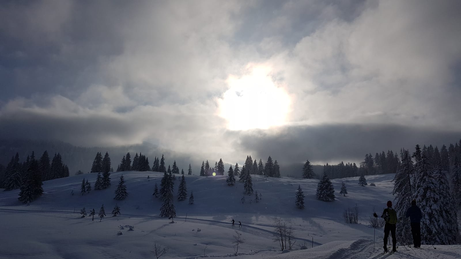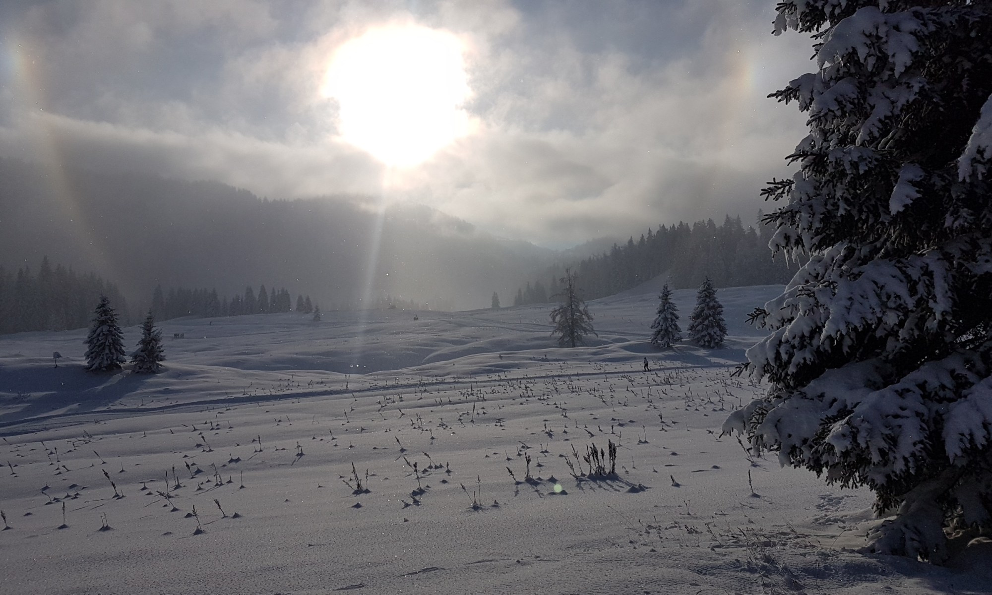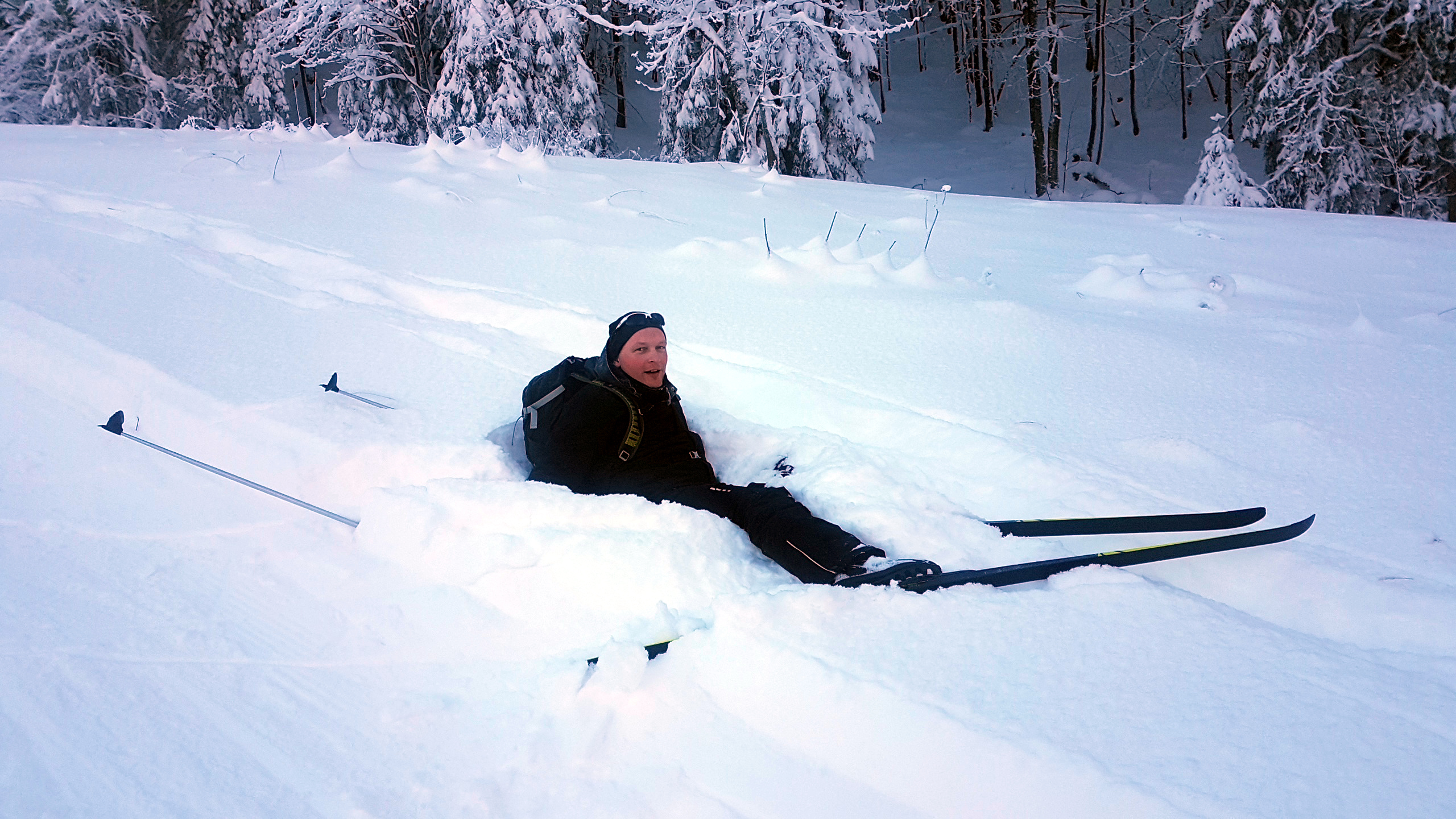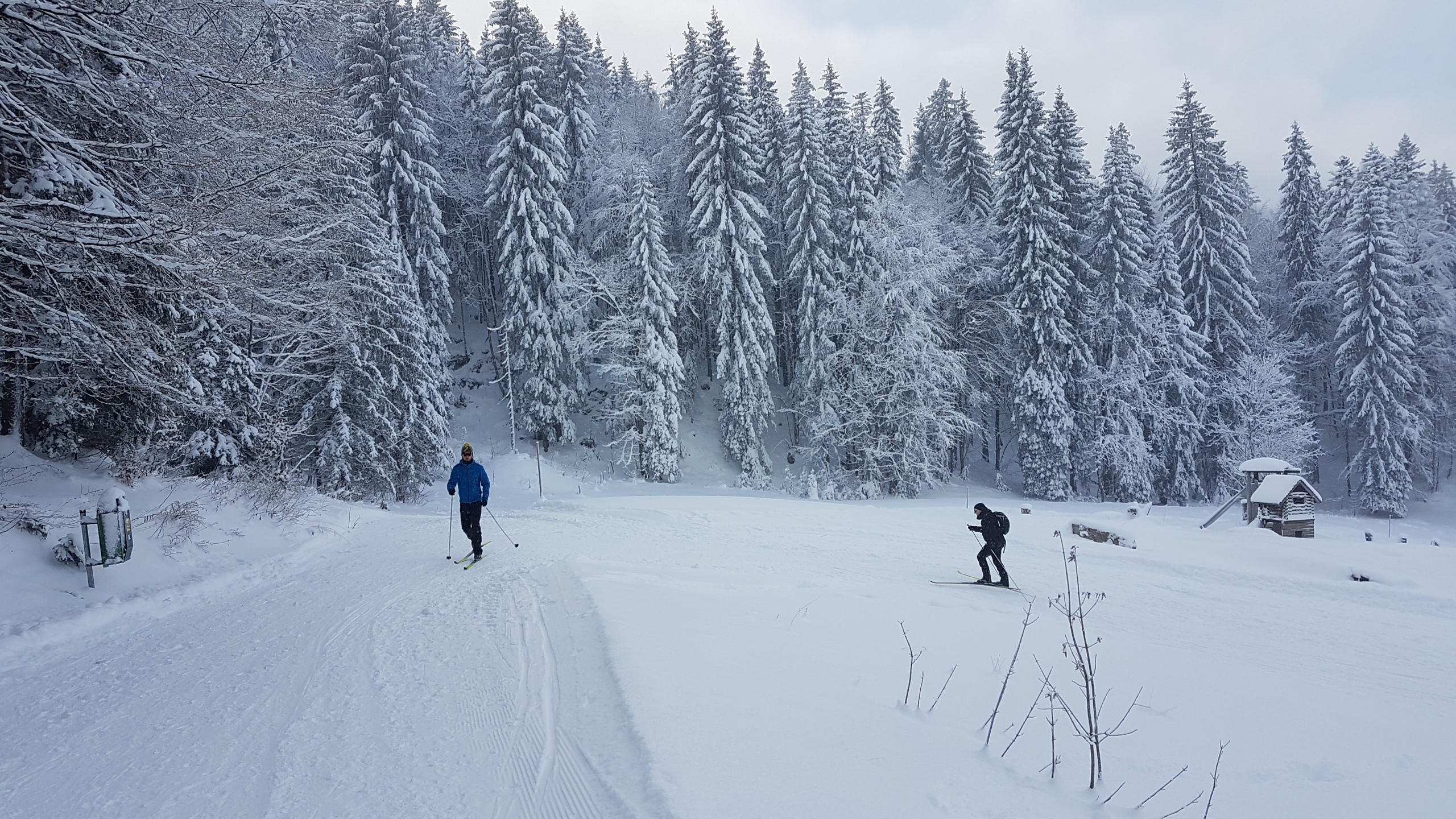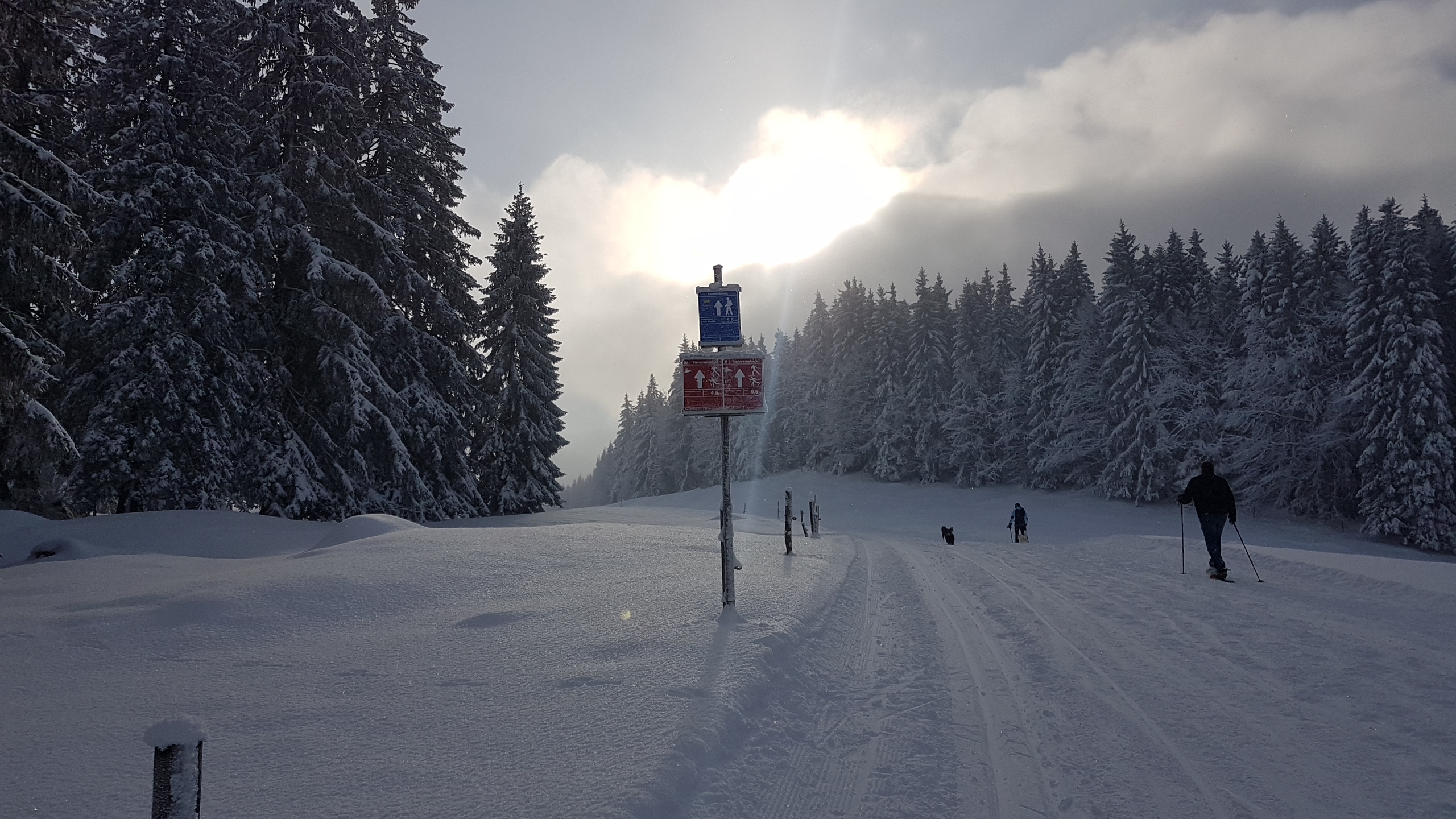 Ever since the first snowfall in November, I couldn’t wait for the day that enough snow had fallen for the first cross-country trails to open. After last weekend, I was hopeful and recruited two friends to follow me for the day. Then I figured that the warm ground had melted quite some of the falling snow. Effectively, we were left with two places we could go to and one of them didn’t promise much. We decided for the other one: the Hemmersuppenalm.