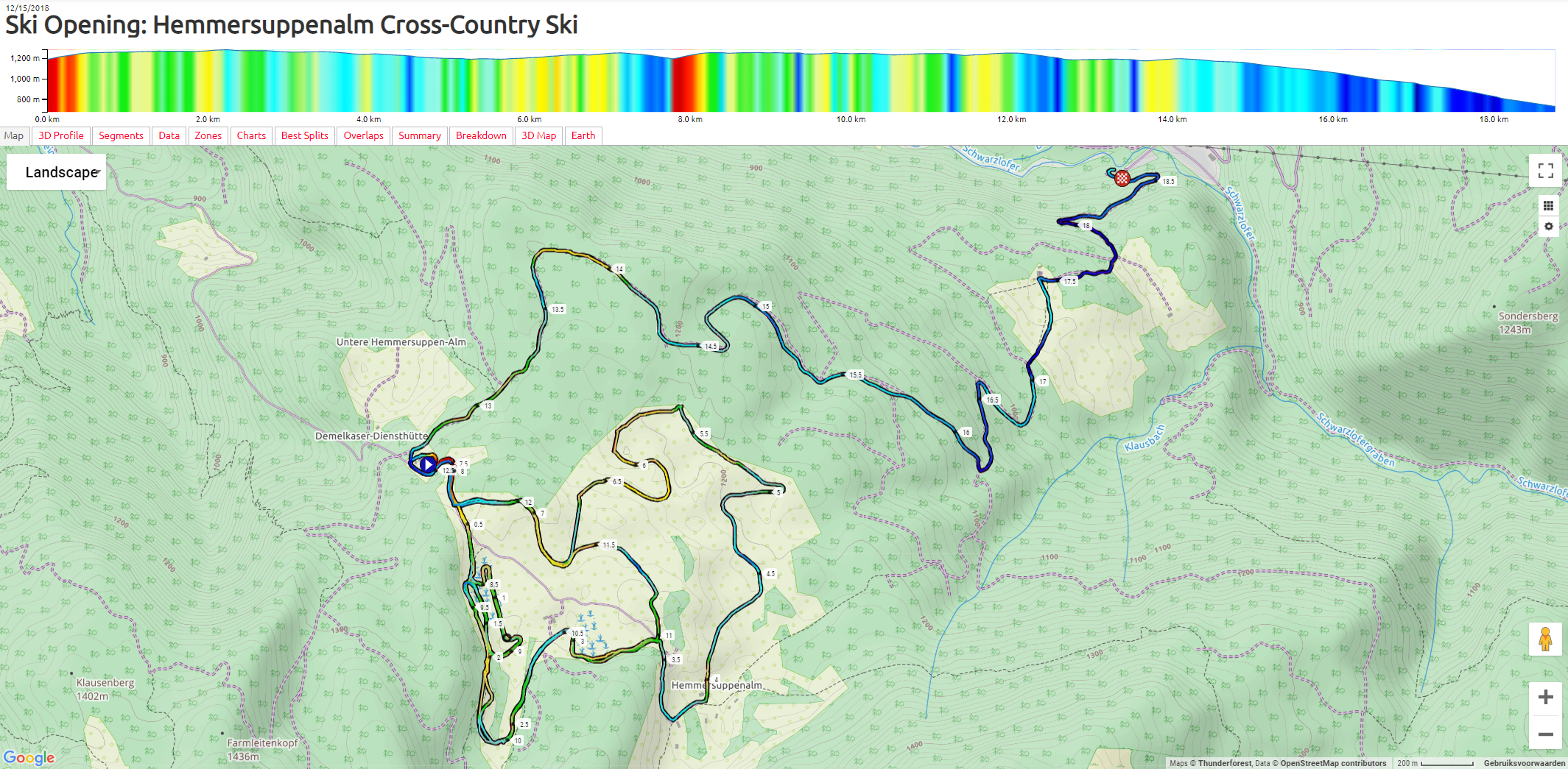 We took this way in the opposite direction, coming down from the Hemmersuppenalm. Our thought was to take the bus from Seegatterl back to Reit im Winkl. (More on this later.) I have mixed feeling about this. It’s the second time I made this descent. The first time, I felt it easy until the snow vanished and had me to walk down the final 2km. This time, my speed was faster. It was not trivial to navigate others’ lanes in the snow. Still, that was the fun part that I’d classify as intermediate. Then we had to cross a little meadow to reach the Nattersbergalm hut. It was just 300m, but those were treacherous. Falling or not falling involves a little bit of luck, as hikers have made the ground very uneven and difficult to control. From the Nattersbergalm, the slope of the descending road increases. The surface is more solid, but actually more icy, and the first 300m through the forest were hell. I basically kept breaking, knowing that I wouldn’t stop anyways even if I wanted. Add another 700m of equally steep, but less icy trail and then a final kilometer which now feels easy, but still isn’t. Don’t be embarrassed taking the ski and walking down for the final 2km.